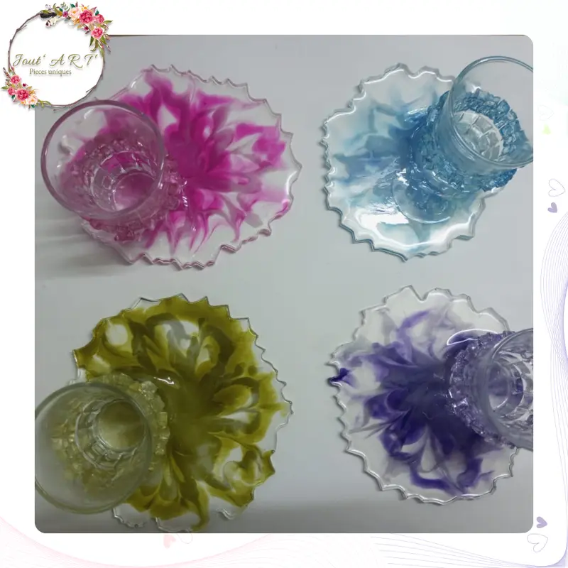 - 4 sous-tasses assorties en résine cristal effet fleurs 3D