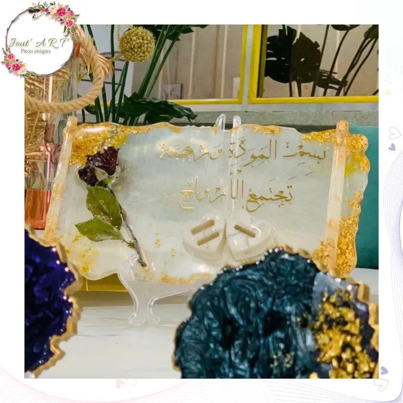 Trophée de Fiançailles / Mariage en Résine Époxy – Un Souvenir Unique et Éclatant