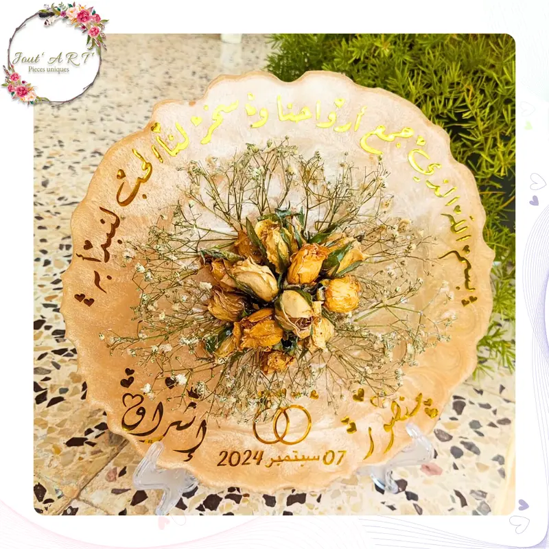 • Détails raffinés : Incorporation possible de fleurs séchées, paillettes, anneaux symboliques ou autres éléments décoratifs pour une touche personnelle.