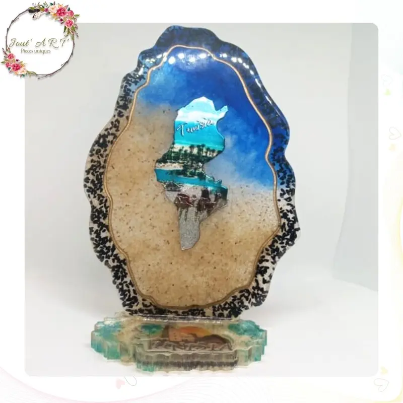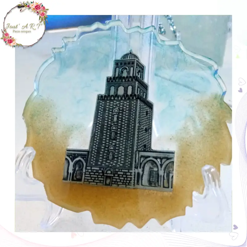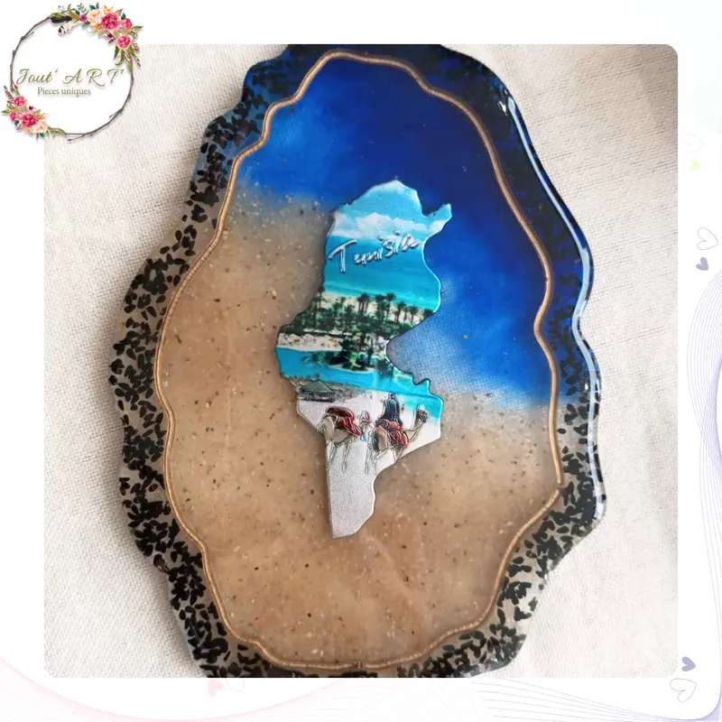Offrez un cadeau-souvenir authentique et artistique avec ce trophée personnalisé en résine, inspiré de l’esprit unique de carte de Tunis , mosquée okba ibn nafaa, la médina, le palmier, le dromadaire, ou encore les portes traditionnelles colorées.